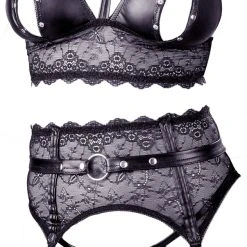 Cottelli Bondage Ouvert-BH Plus Straps-Slip „Bondage“ Im Schwarzen Mattlook