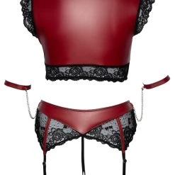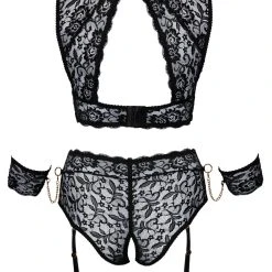 Cottelli Bondage 3-teiliges Straps-Set, Ouvert, Mattlook Mit Blütenspitze