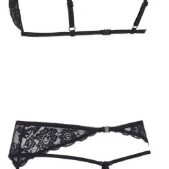 Cottelli Lingerie BH Ouvert Plus Slip Ouvert Aus Elastischen Samtbändern