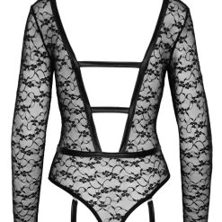 Cottelli Lingerie Body Aus Spitze Mit Mattlook-Riemendetails, Strapse Abnehmbar
