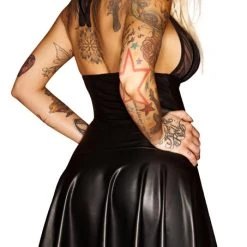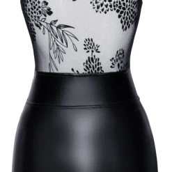 Noir Kleid Im Mix Aus Powerwetlook Und Powernet Mit Lack-Details