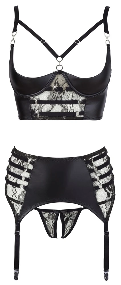 Was ist das Besondere am 3-teiligen Strapsset mit Bustier, Strapsgurt und String ouvert?