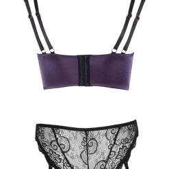 Diese Longline-Hebe plus Straps-Slip ist im edlen Materialmix aus Stretch-Satin und Spitze gefertigt und sieht nicht nur fantastisch aus, das Set trägt sich auch fantastisch! Und die Farbgebung in Violett und Schwarz verleiht diesem Set eine dramatisch-mysteriöse Note, die Deinen provozierend weiblichen Auftritt perfekt unterstreicht. Die länger gearbeitete (Longline) Bügel-Hebe bringt Deine Brüste in Hochform und rückt sie direkt ins Blickfeld Deines Gegenübers. Raffiniert ist das Styling mit dem roségoldfarbenen, mit glitzerndem Strass besetzten Halsband und den Dekolleté-Ketten, die Du auch abnehmen kannst. Auch die stimulierenden Ketten im offenem Schritt des Straps-Slips sind abnehmbar, genauso wie die Strumpfhalter, sodass Du den Slip auch wunderbar solo tragen kannst.
