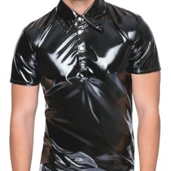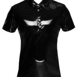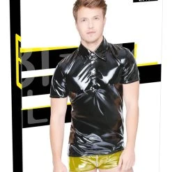 Dieses äußerst körperbetonende Shirt im schwarzen Lackglanz bringt mit seinem klassischen Polo-Style Fetisch und Sports-Fashion aufregend zusammen. Das Poloshirt kannst du mit deinen vorhandenen Outfits vielseitig kombinieren – lässig im Alltag, stylisch im Büro oder aufregend im Club.
