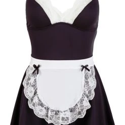 Schnitt & Material: Figurbetontes Minikleid mit verstellbaren Trägern. Leicht ausgestellter Rock und weiße Spitze an Saum und Ausschnitt. Inklusive Hüftschürze mit Spitze und Zierschleifchen zum Binden. Kleid: 86% Polyester, 14% Elasthan. Schürze: 95% Polyester, 5% Elasthan. Gesamte Spitze 100% Polyamid.
