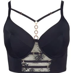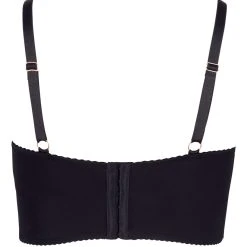 • Schnitt & Material: Schwarzer BH im etwas länger geschnittenen Longline-Style. Mit leicht gefütterten Bügel-Cups und edler Ring- und Stretchbändchen-Verzierung. Aus blickdichtem, elastischem Wohlfühl-Material (95% Polyester, 5% Elasthan) mit transparentem Spitzen-Einsatz vorne (90% Polyamid, 10% Elasthan).