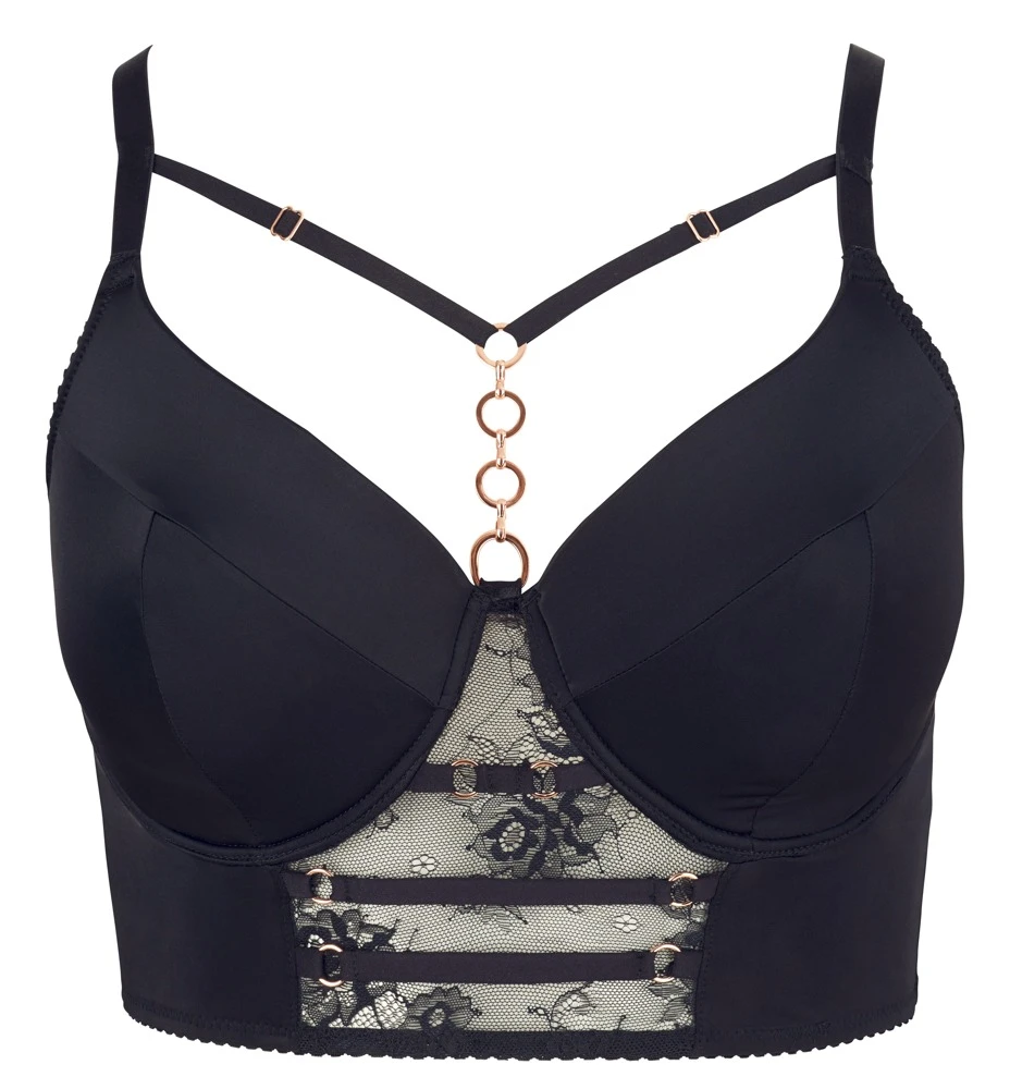 Der Longline-BH setzt Kurven perfekt in Szene! Du verdeckst zwar ein wenig mehr Haut, weckst aber Begierden auf das, was darunter steckt. Die in die leicht gefütterten Cups eingearbeiteten Formbügel, die verstellbaren Cup-Bänder und die roségoldfarbene Ringverzierung bescheren Dir zusätzlich ein atemberaubendes Dekolleté. Auch die Träger sind für eine optimale Passform verstellbar. Elastische Zierbänder und roségoldfarbene Details runden den edlen Look perfekt ab.