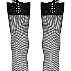 Diese Straps-Strümpfe bestechen mit ihrem sexy Netzmaterial und der Zierschnürung hinten an der Spitze. Ein absolutes Must-have für verführerische Frauen, die wissen was sie wollen.