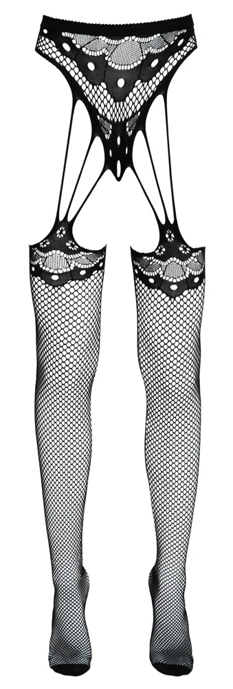 Wie praktisch: Bei diesem Strapsstring sind die Strümpfe gleich angewebt. Und alles ist hochelastisch und weich, sodass du dich wunderbar frei bewegen kannst. Sogar die Zehenpartie ist extra verstärkt, damit deine Zehen beim wilden Spiel nicht durch die Maschen schlüpfen. So bist du in der extravaganten Netz- und Spitzenoptik rundherum verführerisch anzusehen und genießt dabei das herrlich weiche Material auf deiner Haut. Und warum der raffinierte Strapsrio im Schritt offen ist, weißt du sicherlich 😉