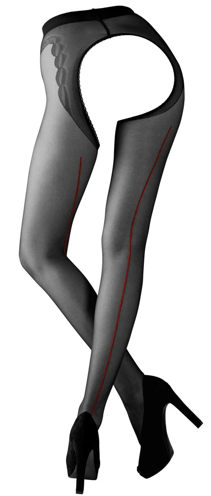 Die Strumpfhose mit offenem Schritt bietet Dir einen betörenden Mix aus Strumpfhose und Sinnlichkeit. Dabei zeigst Du mit dem offenen Schritt unmissverständlich Deine Absichten. Abgerundet wird Dein erotischer Auftritt durch die raffinierte Ziernaht, die deine Beine schmückt. Besonders angenehm für Dich ist der verstärkte Zehenbereich und der mit Mustern verstärkte Bund. Dadurch brauchst Du Dir keine Sorgen um unangenehmes Rutschen an der Hüfte und im Schuh machen.