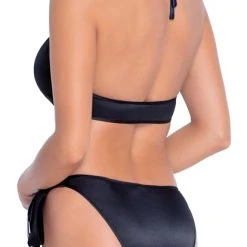 Schönes Ensemble aus weichem Stretchmaterial – herrlich seidig in Optik und Haptik. Raffiniert sind die langen Bänder an den Cups und jeweils seitlich am Slip, die zu dekorativen Schleifen gebunden werden – und genauso schnell wieder geöffnet sind, falls du lasziv die Hüllen fallen lassen willst.
