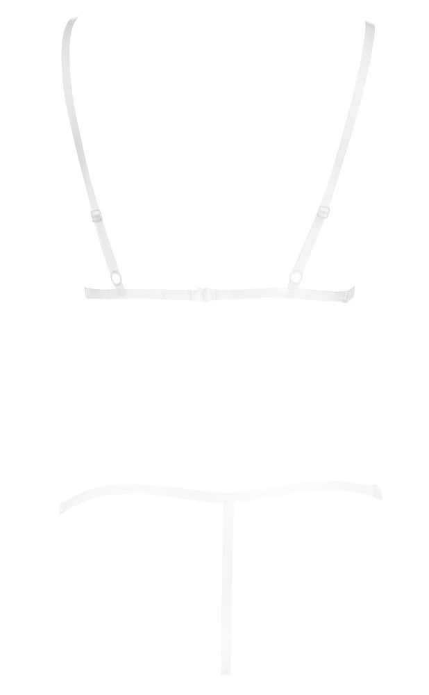 Dieses Set betont eine schöne Rückansicht mit den transparenten Trägern und Bändern, die keine Geheimnisse offenlassen. Die Frontansicht bezaubert hingegen mit verführerischer Spitze, die die intimsten Zonen verdecken und zum Auspacken einladen. Idealer Tragekomfort wird derweil durch verschiebbare Spitze an der Brust ermöglicht, sowie den verstellbaren, elastischen Bändern.