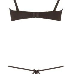 • Schnitt und Material: BH aus Schnüren, Bügeln und Stickerei. String ouvert mit Stickerei. Hauptmaterial 95% Polyester, 5% Elasthan; Stickerei/Spitze 100% Polyester; String 100% Polyester.