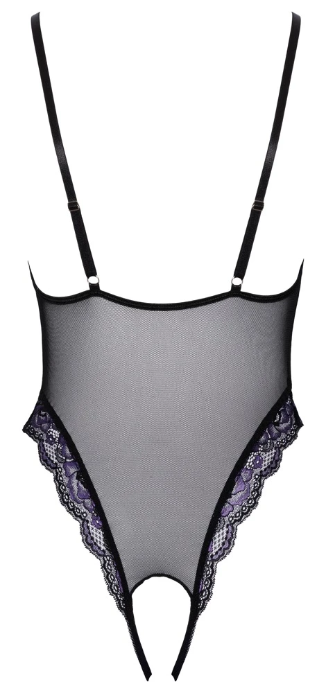 • Schnitt & Material: Body ouvert aus feinem Powernet mit 2-farbiger Blütenspitze an den soften Cups und den hohen Beinausschnitten. Im Dekolleté Stretchriemchen verbunden mit einem Ring. Träger verstellbar. Durch den offenen Schritt führen nur 2 elastische Bänder. 90% Polyamid, 10% Elasthan.