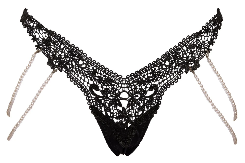 Dieser bildschöne Riostring ist für deine ganz besonderen Anlässe gedacht. Er schmückt mit seiner edlen Stickereispitze und verführt mit seinen elastischen Perlenketten jeweils seitlich. Diese kannst du auch ganz leicht mit ihren kleinen Karabinern abnehmen und/oder durch den Schritt führen und an anderer Position passend wieder einhaken – für ein unnachahmliches stimulierendes Tragegefühl.