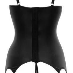 • Schnitt & Material: Strapshemd aus mattem Stoff. 3 verstellbare Halter pro Seite. Geschlitzte Cups. In der Front mit aufwendigen Spitzeneinsätzen und Zierschnürung. Eingenähter Taillengurt. Inklusive String ouvert. Ohne Strümpfe. 90% Polyester, 10% Elasthan; Spitze 90% Polyamid, 10% Elasthan.