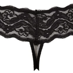 • Schnitt & Material: String aus floraler Spitze. Eingenähte Perlenkette im Schritt. Extra breiter Bund. 100% Polyester.