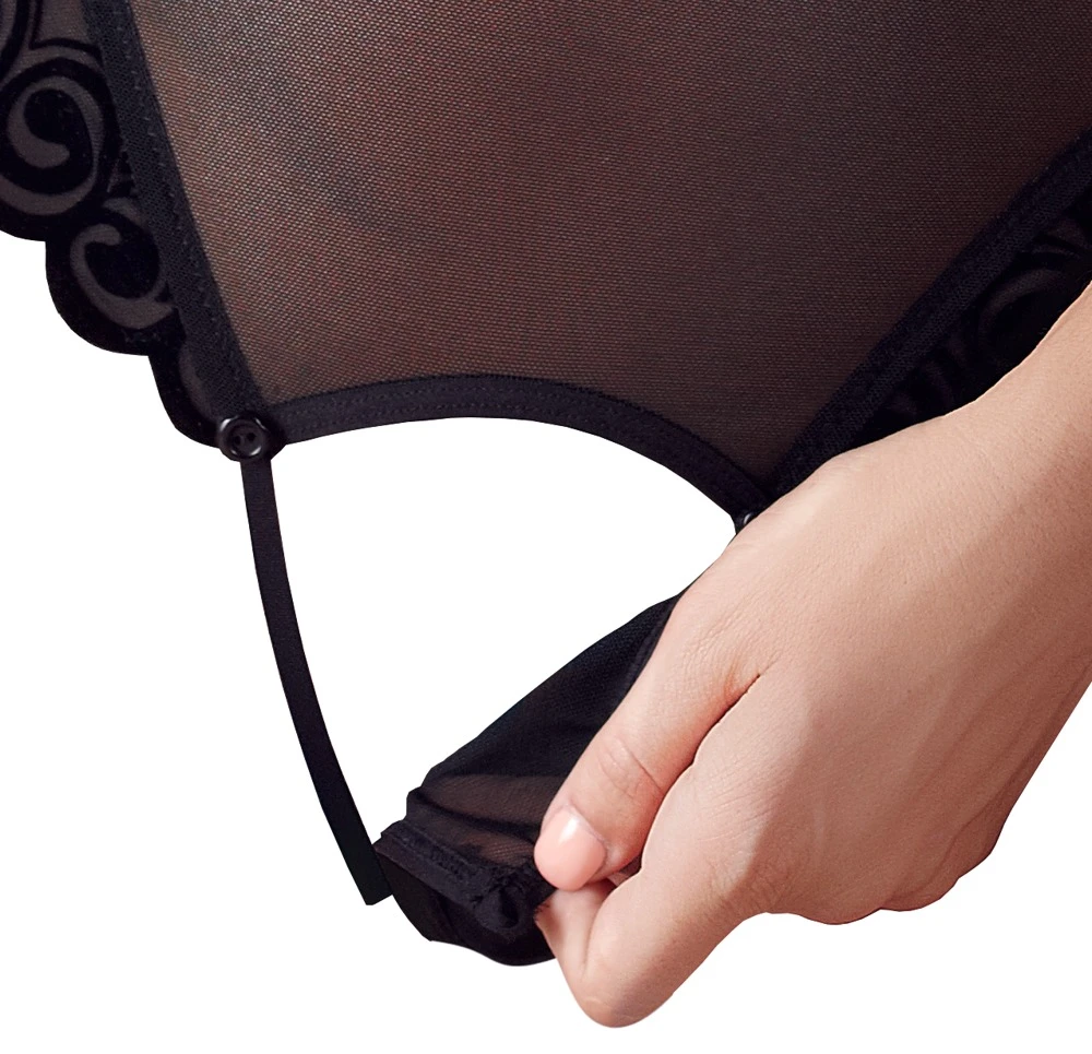 Aber das ist noch längst nicht alles: Auch der Stringteil des Bodys lässt sich ganz einfach abknöpfen und macht so den Weg zu Ihrem Intimstem frei… Wie lange wird Ihr Schatz bei diesem Anblick wohl seine Hände still halten können?! Mit verstellbaren Trägern. 90% Polyamid, 10% Elasthan.