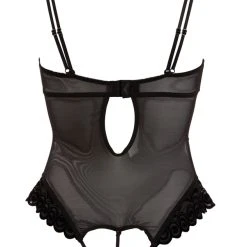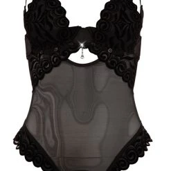 Je nach Lust und Laune können Sie so den Body entweder mit BH oder Hebe tragen – die Cups lassen sich nämlich samt Trägern komplett abknöpfen. Aber nicht nur die Cups sind mit wunderschönem Flockprint verziert, auch die Beinausschnitte sind so geschmĂĽckt, um Ihre VorzĂĽge zu betonen.
