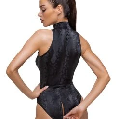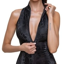 Dieser Body punktet eindeutig mit seiner schimmernden Schlangenhaut-Optik, von der man seinen Blick nicht mehr abwenden möchte. Das hochwertige Stretchmaterial schmiegt sich komfortabel an deine Kurven wie eine zweite Haut. Mit dem 2-Wege-Reißverschluss kannst du selbst entscheiden, wieviel Dekolleté du zeigst. Und wie praktisch, dass der Zip sogar durch den Schritt bis über zum Po führt …
