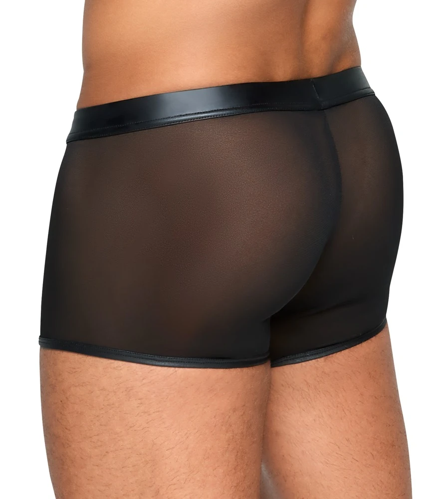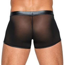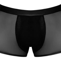 • Schnitt & Material: Hautnahe Pants von finesse HOMME in schwarzer Semi-Transparenz mit blickdicht unterlegtem Beutel. Beinabschlüsse und Bundgummi im Mattlook. 90% Polyester, 10% Elasthan.
