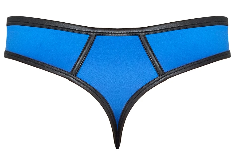 • Schnitt & Material: Royalblauer Riostring mit Einfassungen und dekorativen Paspelierungen in Schwarz. 90% Polyester, 10% Elasthan.
