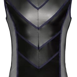 • Schnitt & Material: Ärmelloses schwarzes Shirt mit effektvollen blauen aufgesteppten Streifen in der Mattlook-Front und eingewebten Längsstreifen im transparenten Powernet-Rücken. Mattlook 90% Polyester, 10% Elasthan, Polyurethan-Beschichtung; Powernet 90% Polyamid, 10% Elasthan.