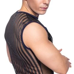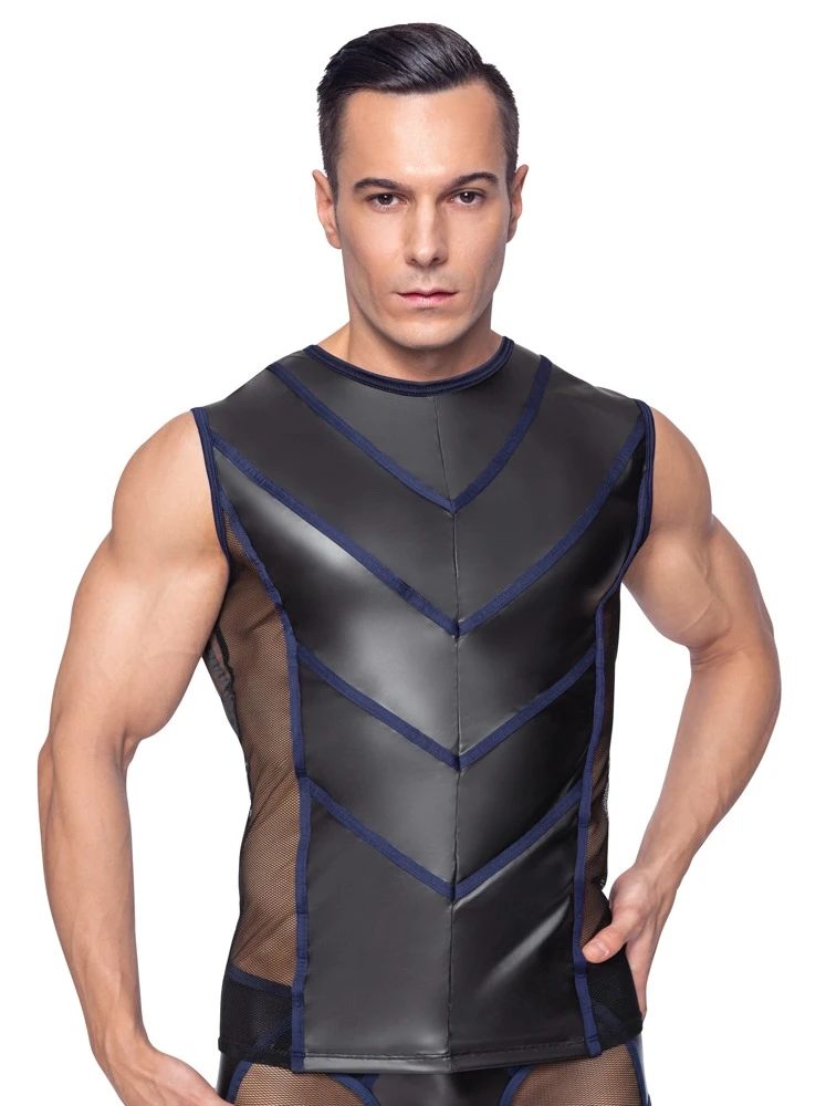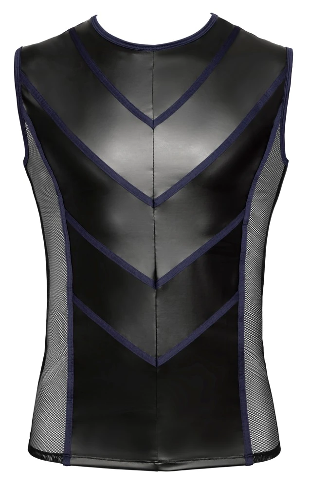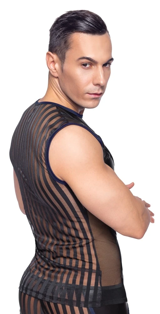 Dieses Shirt im trendigen Materialmix aus transparentem Powernet (Rücken) und edlem Mattlook (Front) schmiegt sich absolut hautnah an und betont aufregend deinen muskulösen Oberkörper. Die blauen Diagonal-Streifen vorne und die Längsstreifen im transparenten Rücken sorgen für den stylischen Touch. Das Shirt trägt sich einfach nur fantastisch und bietet dir in jeder Lage perfekte Passform – ob nun im Alltag oder bei deinen privaten Eskapaden.