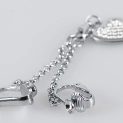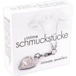 • Silberfarbene Intimkette mit strassbesetzten Herzanhänger.