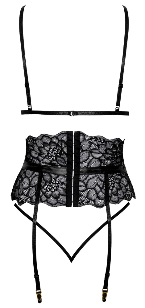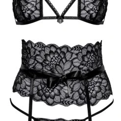 âą Schnitt & Material: Soft-BH, Strapsgurt & String im eleganten Set komplett aus feiner schwarzer Spitze. Stylischer BH mit Hakenverschluss im RĂŒcken, TrĂ€ger verstellbar. Taillienbetonender Strapsgurt mit SatinbĂ€ndern, die vorne zur Schleife gebunden werden. Hinten Hakenverschluss ĂŒber die volle Breite, Strumpfhalter verstellbar. Die schmalen Stretchriemen des Strings vereinen sich im Schritt. 90% Polyamid, 10% Elasthan.
