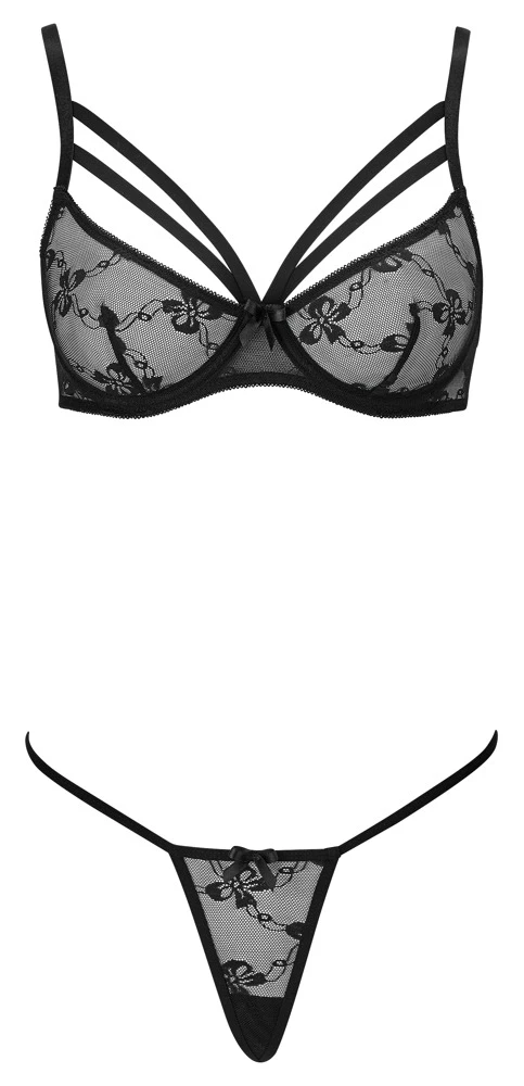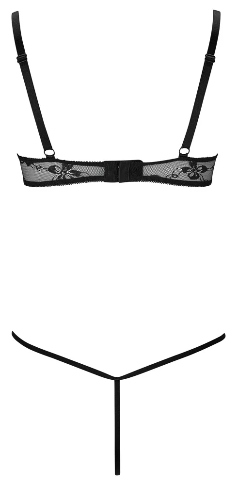 Betöre mit dieser aufregenden Kombination aus Spitze! Transparent gewährt sie verführerische Einblicke, während die Bänder am Dekolleté den Busen aufregend einrahmen.