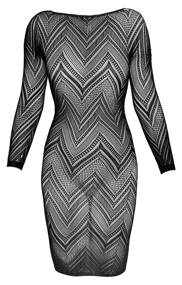 Dieses extravagante Kleid ist rundherum in verschiedenen Zickzack-Netzoptiken und – strukturen gefertigt, die deine Haut verführerisch durchschimmern lassen. Genieße die streichelweiche Qualität auf deiner Haut, während dein Gegenüber deinen Wahnsinns-Anblick genießt!