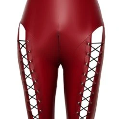 • Schnitt & Material: Rundum elastischer Overall im roten Mattlook. Hautnahe Schnittführung mit langem engen Bein, das vorne und hinten sowie von oben bis unten mit einer Schnürung versehen ist. Im Schritt mit 2-Wege-Reißverschluss. Rückenfrei – Neckholder mit Clipverschluss. 85% Polyester, 15% Elasthan.