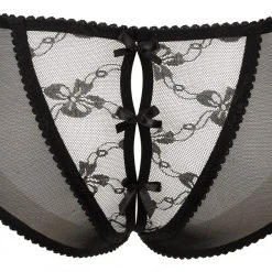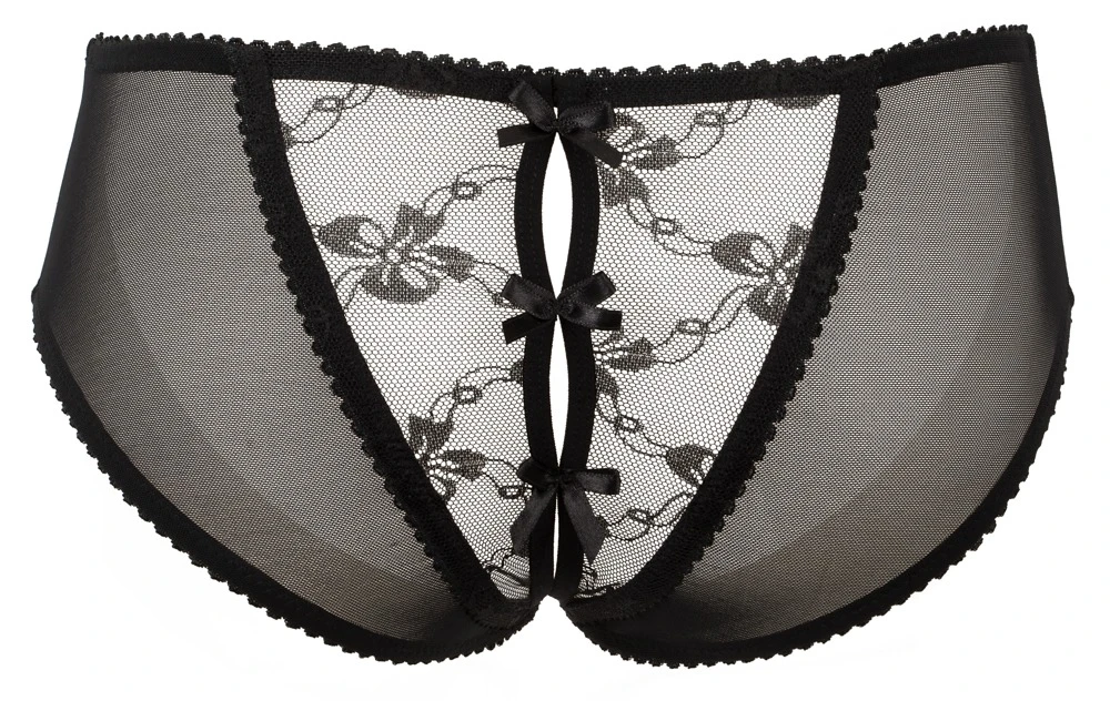 Dieser Slip inszeniert aufregende Einblicke mit seinem offenen Schritt und der raffiniert geschlitzten Rückseite, die über dem Po nur von 3 kleinen Schleifchen zusammengehalten wird. Der elastische Materialmix aus Powernet und Spitze sorgt für fantastische Passform und trägt sich einfach nur wunderbar!