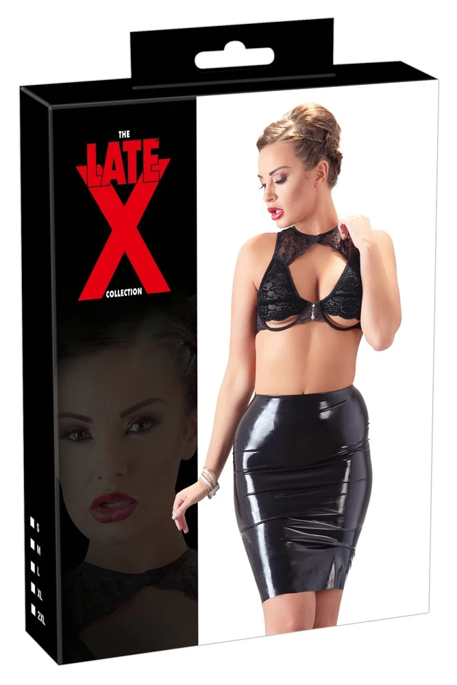 • Schnitt & Material: Taillenhoher Latex-Rock. Knielang. Auf flacher Form getaucht. Stärke 0,35 mm. Latex, hergestellt unter der Verwendung von Naturkautschuklatex, der Allergien verursachen kann.
