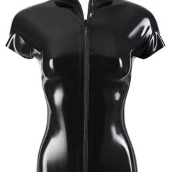 • Schnitt & Material: Latex-Shirt mit kurzem Arm und durchgehendem Front-Zip. Tailliert, lang geschnitten. Latex (hergestellt unter der Verwendung von Naturkautschuklatex, der Allergien verursachen kann).