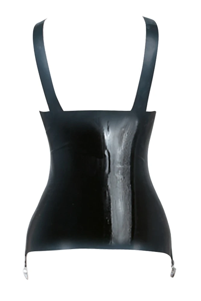 • Schnitt & Material: Latex-Strapshemd mit zwei Öffnungen für den Busen. 4 Strapsen. Getauchte Ware. Hinweis: Latex, hergestellt unter der Verwendung von Naturkautschuklatex, der Allergien verursachen kann.