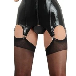 Dieses taillierte Latex-Strapshemd mit durchgehendem Front-Reißverschluss und 4 Strapshaltern schmiegt sich formschön an weiblichen Rundungen und lässt diese zum Anbeißen scharf aussehen!