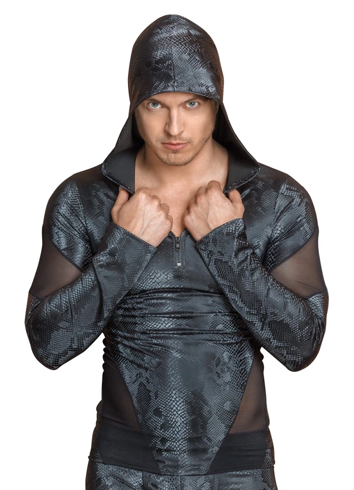 Dieses stylische Kapuzen-Shirt punktet eindeutig mit seiner schimmernden Schlangenhaut-Optik, von der man seinen Blick nicht mehr abwenden möchte. Das hochwertige Stretchmaterial schmiegt sich komfortabel an wie eine zweite Haut – und trägt sich einfach nur großartig!