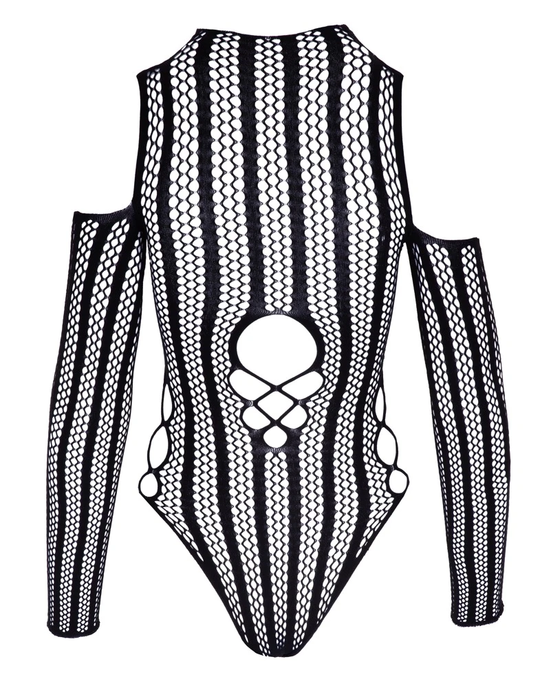 Dieser raffiniert schulterfreie Langarm-Einteiler aus hochelastischem Netzmaterial sieht mit seiner eingewebten Streifen-Optik nicht nur umwerfend aus, er trägt sich auch höchst komfortabel! Der nahtlos rundgestrickte Body schmiegt sich streichelweich an deine Kurven und die schulterfreie Schnittführung mit aufregend platzierten Cut-outs lässt viel Haut blicken …