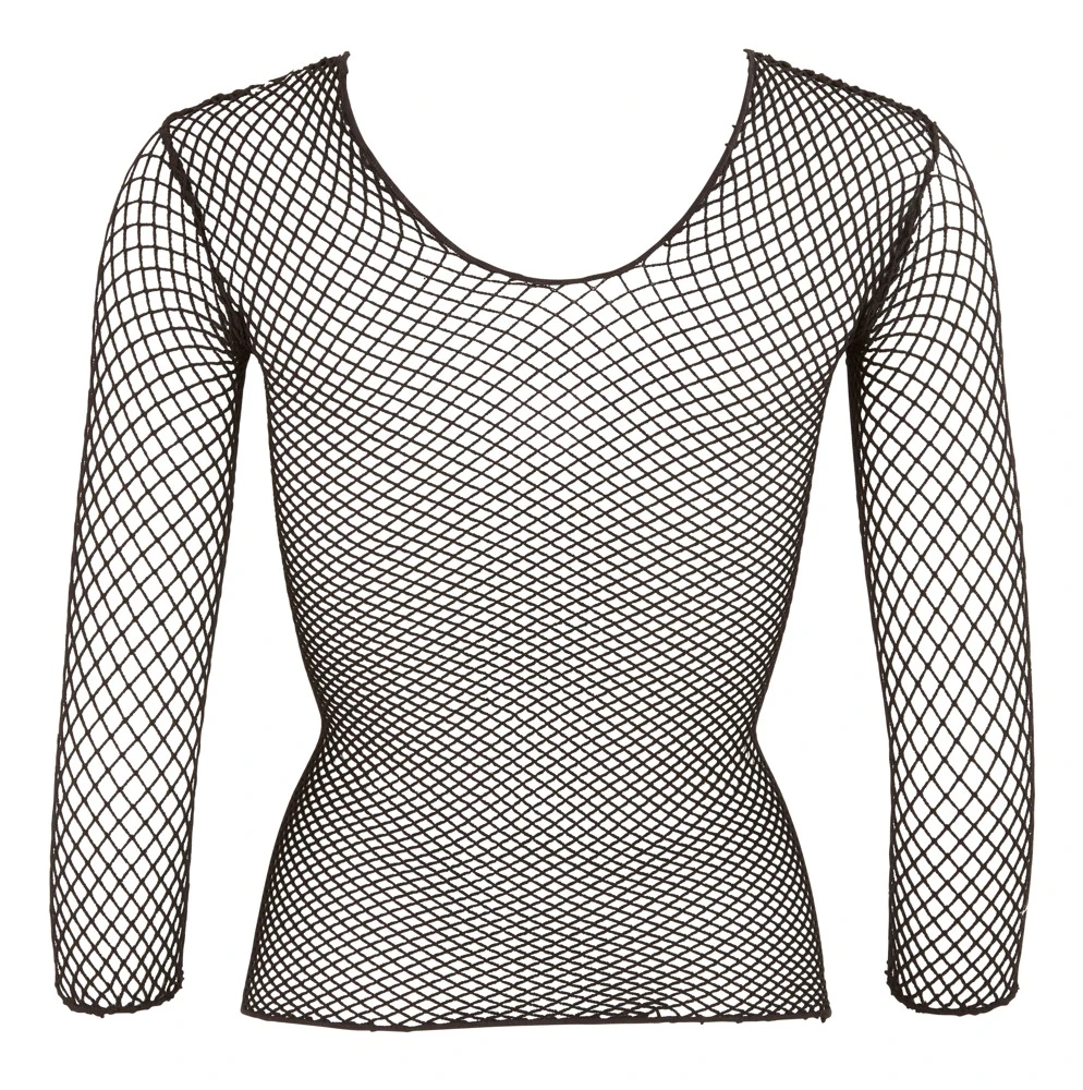 • Schnitt & Material: Grobmaschiges Netzshirt mit Rundhals und langem Arm. Hochelastisch. 92% Polyamid, 8% Elasthan.