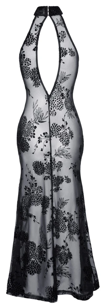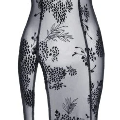Mit diesem verführerischen langen Kleid hüllst du deine atemberaubenden Kurven in feinstes Powernet und zierst sie mit zartem Blüten-Samtflockprint. Dank des elastischen Materials und des hohen Beinschlitzes vorne kannst du dich unbeschwert bewegen und die zarte Transparenz auf deiner Haut rundherum genießen. Provokante Träger:innen tragen nix darunter – mit Body oder BH und Slip darunter siehst du aber auch umwerfend aus!