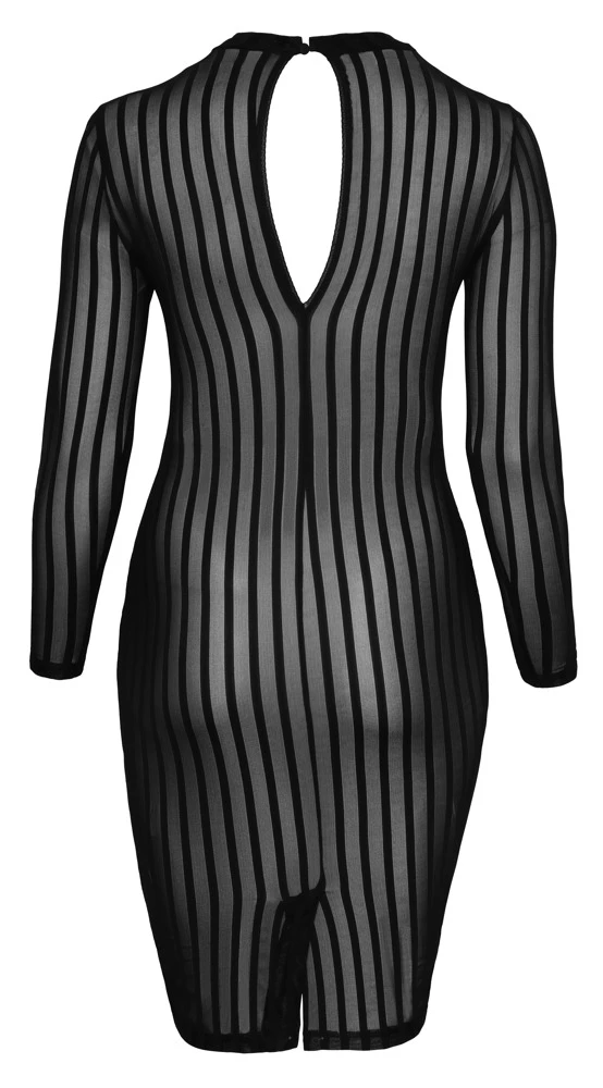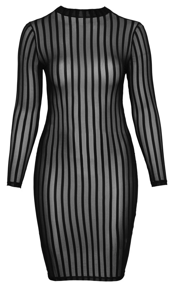 Mit diesem verführerischen Langarm-Kleid hüllst du deine atemberaubenden Kurven in feinsten Tüll mit stylischem Streifendesign. Dank des elastischen Materials und des Gehschlitzes kannst du dich unbeschwert bewegen und die zarte Transparenz auf deiner Haut rundherum genießen. Provokante Träger:innen tragen nix darunter – mit Body oder BH und Slip darunter siehst du aber auch umwerfend aus!
