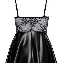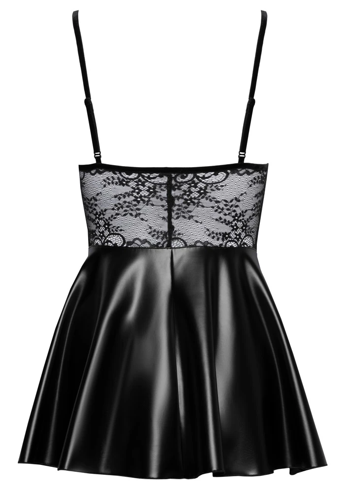 Dieses Dessous-Kleidchen kommt im stylischen Mix aus zarter Spitze (Oberteil) und matt glänzendem Powerwetlook (Rockteil) daher und garantiert dir einen höchst verführerischen Auftritt. Das Spitzen-Oberteil sorgt mit seinen Bügel-Cups und den verstellbaren Trägern für optimale hautnahe Passform und lässt deine Haut sinnlich durchschimmern. Der ausgestellte Rock schwingt bei all deinen Bewegungen lasziv um deine Hüften und deinen Po. Vorne ist ein Reißverschluss eingearbeitet, der dir das An- und Ausziehen ganz einfach macht.