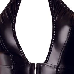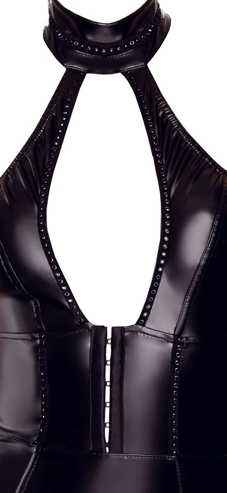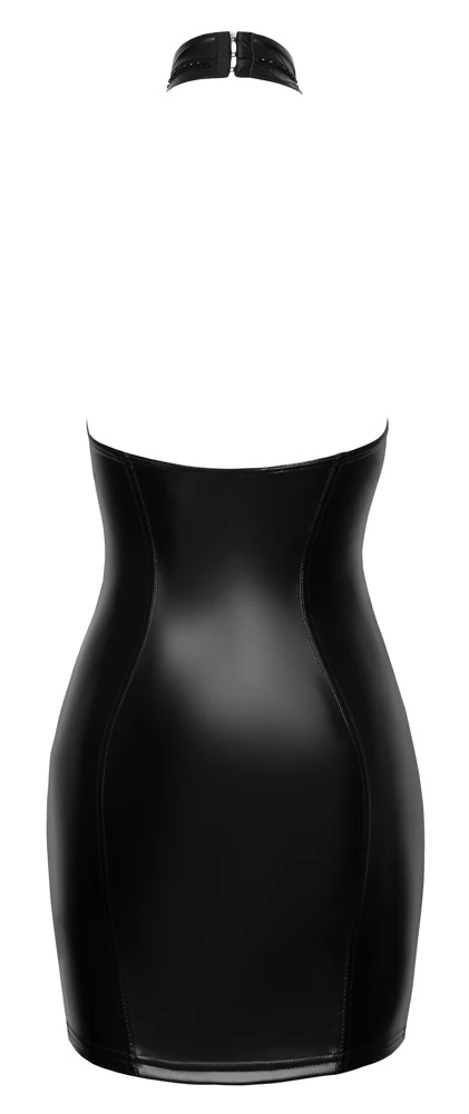âą Schnitt & Material: Kurzes schulterfreies Kleid in enger taillierter SchnittfĂŒhrung komplett im schwarzen matt glĂ€nzenden Powerwetlook mit Strassstein-Besatz in der Front. GroĂzĂŒgiges DekolletĂ©, darunter Hakenverschluss in der Taille. RĂŒckenfrei – Halsband-Neckholder mit Hakenverschluss hinten. 76% Polyester, 24% Elasthan, Polymer-Beschichtung.