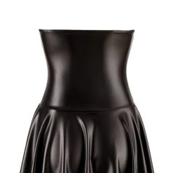 • Schnitt & Material: Kurzes Kleid in enger taillierter Schnittführung mit ausgestelltem Röckchen. Im schwarzen edlen Mix aus weichem Powernet mit Lack-Details (Oberteil) und Powerwetlook (Rockteil). Vorne durchgehender 2-Wege-Reißverschluss vom Dekolleté bis zum Saum. Rückenfrei – Neckholder zum Binden. Ausgestellter Rock vorne etwas kürzer geschnitten als hinten. 76% Polyester, 24% Elasthan, Polymer-Beschichtung; Powernet 85% Polyester, 15% Elasthan.