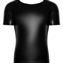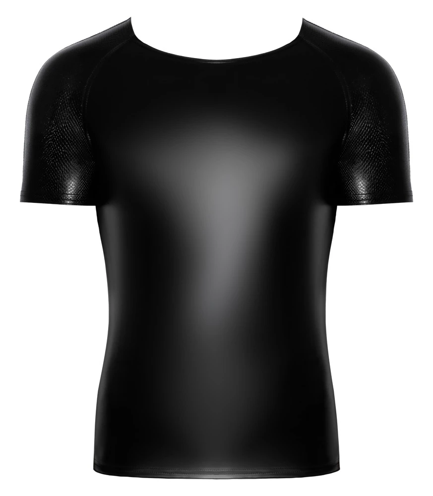 Dieses feine schwarze Shirt schmiegt sich komfortabel an wie eine zweite Haut – und trägt sich einfach nur großartig! Der matt glänzende Powerwetlook betont deinen Oberkörper hervorragend. Die Arm- und Schulterpartie in schillernder Schlangenhaut-Optik setzt deine Muckies perfekt in Szene. Und verführt zum Berühren …