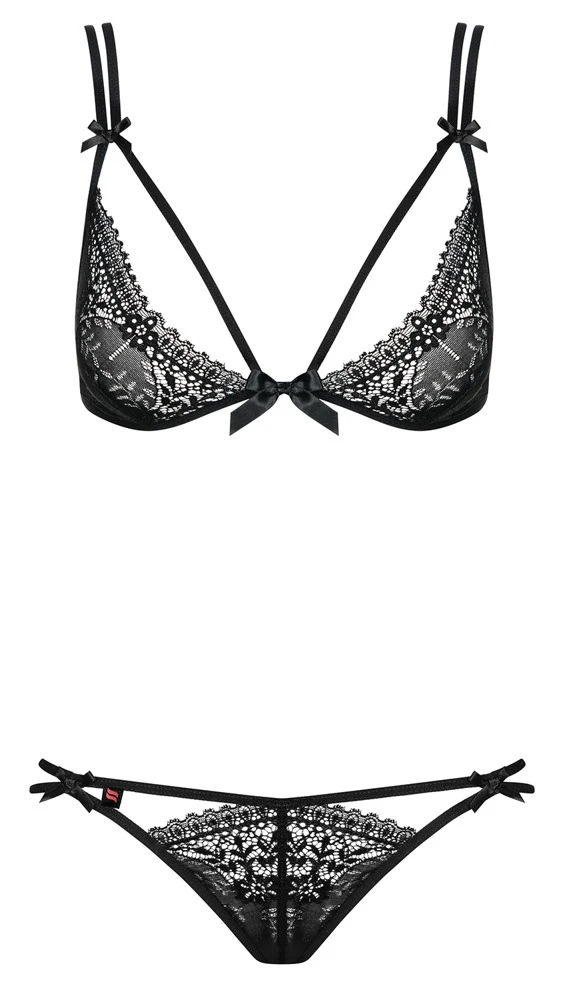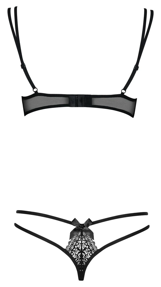 Zeige Stil und Klasse mit diesem schicken Ensemble für aufregende Momente allein oder zu zweit! Die zarte Spitze schmiegt sich sanft an deine Haut, während die dekorativen Bänder deine Brüste, deine Hüfte und deinen Po sinnlich betonen. Besser kannst du deine Sexyness nicht definieren!