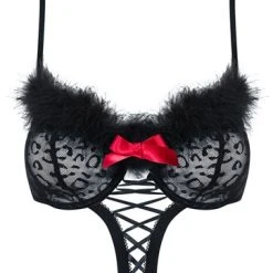 ⹠Schnitt & Material: Body mit abnehmbarem Schwanz und Haarreifen mit Ohren. TrÀger verstellbar. Schwarz mit Leo-Print. 94% Polyamid, 6% Elasthan.