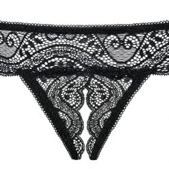 • Schnitt & Material: Riostring aus weicher elastischer Spitze mit etwas breiterem Spitzenbund. Im Schritt und über dem Po offen. 90% Polyamid, 10% Elasthan.